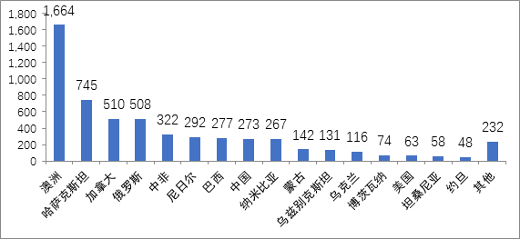 ? 天然鈾是生產濃縮鈾的原料,也可用于生產钚。石墨水堆和石墨氣冷堆用的天然鈾燃料是加有少量合金元素的金屬鈾,重水堆用的天然鈾燃料是二氧化鈾陶瓷體 ? 原子序數為92,原子量為238,是自然界中能夠找到的最重元素。 同位素組成 鈾的天然同位素組成為: ? 238u:自然豐度99.275%,原子量238.0508,半衰期4.51X109a ? 235U:自然豐度0.720%,原子量235.0439,半衰期7.00X108a ? 234U:自然豐度0.005%,原子量234.0409,半衰期2.47X105a 輕水堆核電站所需要的鈾-235豐度大約在3%~5%,核武器所需要的鈾-235豐度要達到90%以上。豐度這個概念是指某一同位素在這個元素的比例。鈾-235的豐度為3%就是指每100個鈾原子核中有3個原子核是鈾-235。按照鈾濃度的不同,國際原子能機構將鈾分為微濃縮(0.9%~2%)、低濃縮鈾(2%~20%)和高濃縮鈾(20%以上)。在高濃縮鈾中,鈾-235豐度超過85%的被稱為武器級濃縮鈾,可以直接用于制造核武器。 鈾元素分布 天然鈾在地殼中分布廣泛,地殼中鈾的平均含量約為百萬分之2.5,即平均每噸地殼物質中約含2.5克鈾,這比鎢、汞、金、銀等元素的含量還高。鈾在各種巖石中的含量很不均勻。例如在花崗巖中的含量就要高些,平均每噸含3.5克鈾。在地殼的第一層(距地表 20 km)內含鈾近1.3×10^14 噸。依此推算,一立方公里的花崗巖就會含有約一萬噸鈾。海水中鈾的濃度相當低,每噸海水平均只含3.3毫克鈾,但由于海水總量極大(海水中總含鈾量可達 4.5×10^9 噸),且從水中提取有其方便之處,所以不少國家,特別是那些缺少鈾礦資源的國家,正在探索海水提鈾的方法。 ? 在自然界中有三種同位素存在,半衰期(數億年~數十億年),地球上238U(占99.284%)。 ? 其化學性質活潑,易與大多數非金屬元素發生反應。 鈾礦物 ? 放射性衰變:鈾的原子核屬不穩定原子核,鈾礦的化學成分是不恒定的。 ? 類質同像:由于U4+的粒子半徑與Th4+及REE3+的相近,所以一些U4+礦物中常含有釷和稀土元素的類質同像混入物,或以類質同像形勢存在于其它礦物晶格中。 ? 發光性:鈾礦物在外來能量(如紫外線)激發下能夠發射可見光,這種發光性是六價鈾礦物的特性,而四價鈾不具備發光性。 ? 鈾的價態:在礦物中以+4和+6兩種價態存在,無論在晶體化學性質上,還是在地球化學性質上,它們都有很大的差別。 ? 顏色:四價鈾礦物的顏色多為黑色、褐黑色或暗褐色。六價鈾礦物主要為黃色、黃綠色、綠色等。 綠鈾礦 銅鈾云母 來源:中國核學會。 已知的鈾礦物有200多種,但具有工業開采價值的鈾礦只有10余種,其中最重要的有: ? 晶質鈾礦(Uraninite) ? 瀝青鈾礦(Pitchblende) ? 鈦鈾礦(Brannerite) ? 鈣鈾云母(Autunite) ? 釩鉀鈾礦(Carnotite) ? 釩鈣鈾礦(Tyuyamunite) 鈾礦物的成因 主要包括: ? 內生作用(如巖漿作用、偉晶作用、熱液作用等) ? 表生作用(如后生淋積作用、風化作用等) 總體而言,四價鈾礦物主要是內生作用的產物,六價鈾礦物絕大部分是表生作用的產物。 鈾的放射性 鈾是放射性核材料,能夠放射出α、β、γ三種射線,少量的輻射,對人體不會造成危害。但是,當放射性物質濃集到一定程度,其放射性劑量會大幅度提升,對人體造成危害。 無處不在的輻射:我們吃的食物、住的房屋、天空大地、山川草木,甚至人體都存在放射性。≤250mSv/a,不會對人體造成傷害。 高原 3.00msv/a 蔬菜 0.20msv/a 礦泉水 0.25msv/a 磚房 0.75msv/a ct 0.02msv/a 飛機 0.03msv/a 土壤 0.15msv/a 核電站 0.01msv/a 鈾礦床分類 國際原子能機構(2013 年)將 世界鈾礦床劃分為7 大工業類型, 各類型占世界資源量的估算百分比分別為: 其中浸染性鈾礦主要分布在澳大利亞及非洲,不整合面型鈾礦主要分布在加拿大阿薩巴斯卡盆地,砂巖型鈾礦主要分布在中亞。 全球主要國家鈾資源分布 來源: OECD NEA & IAEA, Uranium 2016: Resources, Production and Demand ('Red Book').
